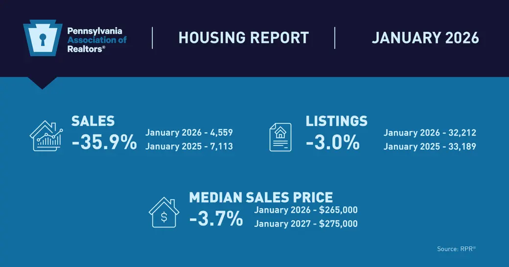 Colder-than-usual temperatures and piles of snow spurred a drop in both home sales and prices in January for the Pennsylvania housing market, as reflected in the latest housing report prepared for the Pennsylvania Association of Realtors®.